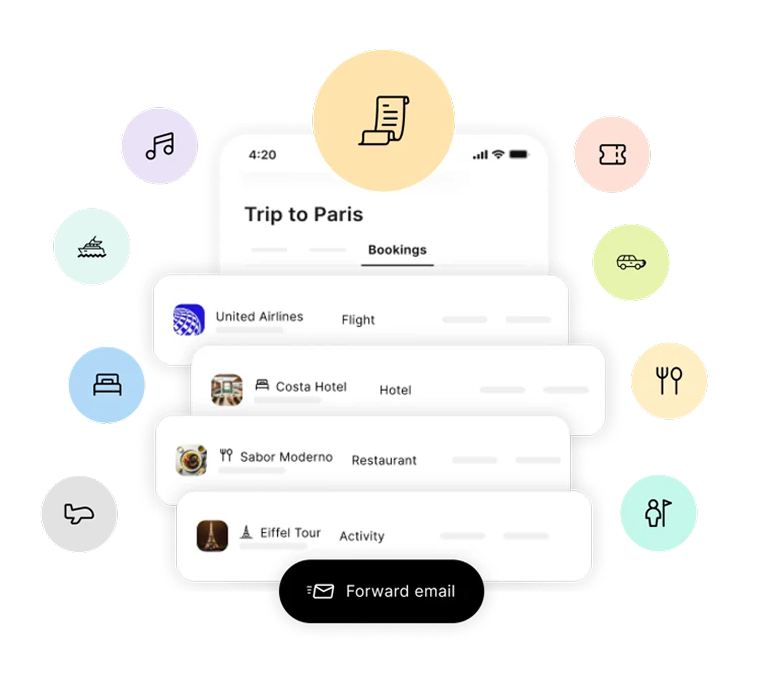 Get started by uploading a receipt or confirmation to Mindtrip or forwarding it to receipts@mindtrip.ai. Add new ones as you book and access everything in one place while you travel.